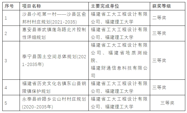 福建工大设计院五项成果获省国土空间规划优秀科技成果奖