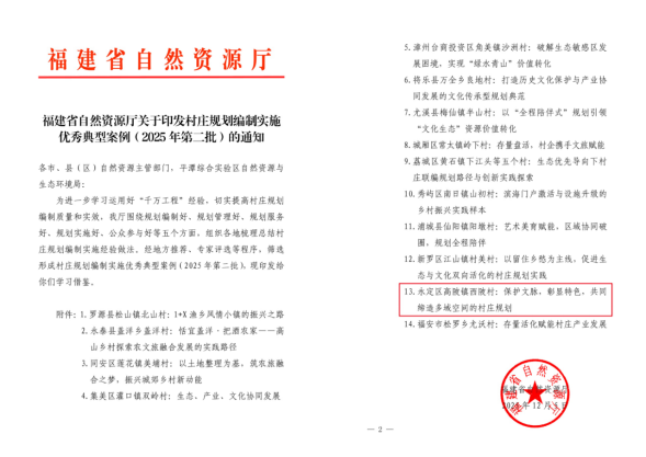 近日,福建省自然资源厅公布2025年第二批村庄规划编制实施优秀典型案例,福建省招标股份有限公司权属企业——福建省工大规划设计院有限公司编制的龙岩市永定区高陂镇西陂村村庄规划成功入选,为全省传统村落保护与乡村振兴融合发展提供了实践范本。