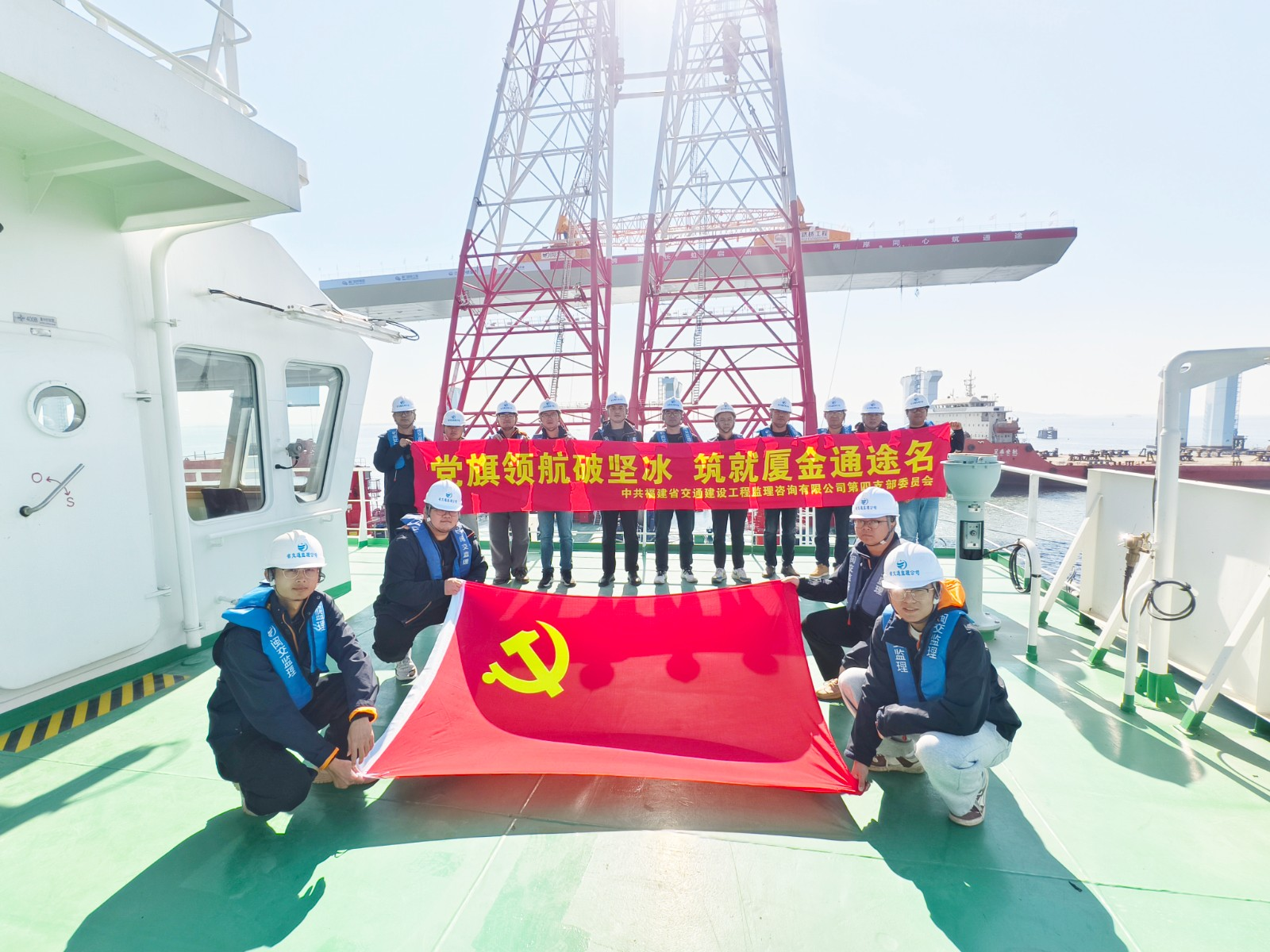 为确保吊装作业安全有序,厦金大桥(厦门段)J2总监办监理团队与承包人一起研究运用智能船舶调度系统,将施工工序精细分解至分钟级,实现主动调度与精准控制。事前总监办组织对承包人和班组进行吊装监理交底,依托“波浪-潮汐-风暴潮”三联预警系统及专项防台锚地规划,实时跟踪气象变化,筑牢极端天气安全防线。同时,督促承包人建立全流程安全质量管理体系,吊具进场前完成全焊缝探伤检测与预拼试吊,安装后组织参建各方联合验收,对起重船动力系统及安全保护装置等关键部位开展专项检查,全力保障施工过程安全。