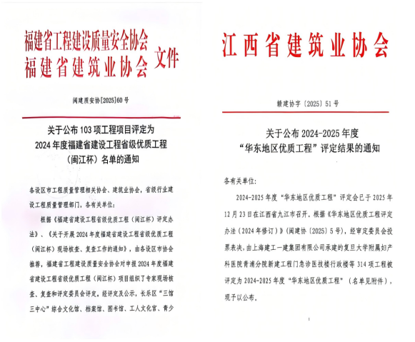 近日,福建省招标股份有限公司权属福建工大工程咨询管理有限公司服务的清流县红色文旅教育实践基地及附属设施建设全过程工程咨询项目凭借出众表现,一举摘得2024年度福建省“闽江杯”优质工程奖及2024-2025年度“华东地区优质工程”两项大奖。
