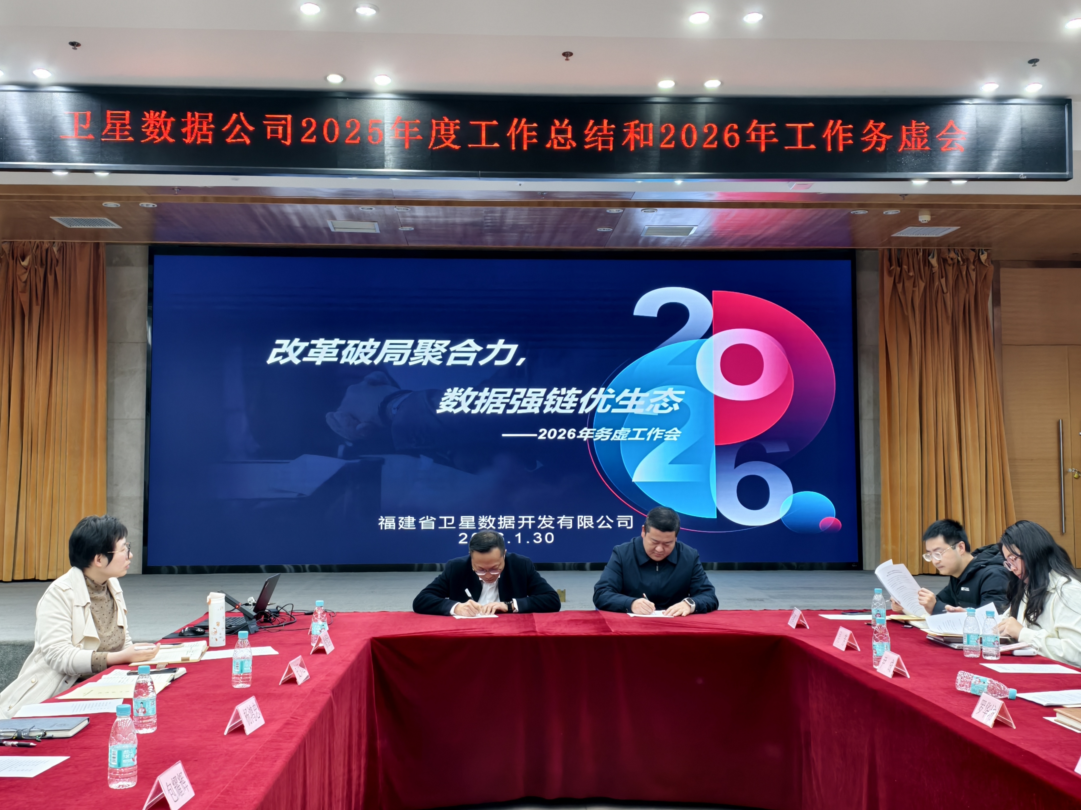 为 全面落实“八闽综改”专项行动要求,聚力服务福建省“四大经济”融合发展, 奋力谱写公司发展新篇章,2026年1月30日福建省卫星数据开发有限公司以“改革破局聚合力 数据强链优生态”为主题召开2025年度工作总结和2026年工作务虚会。公司班子成员、中层管理人员和职工代表近40人参加会议。