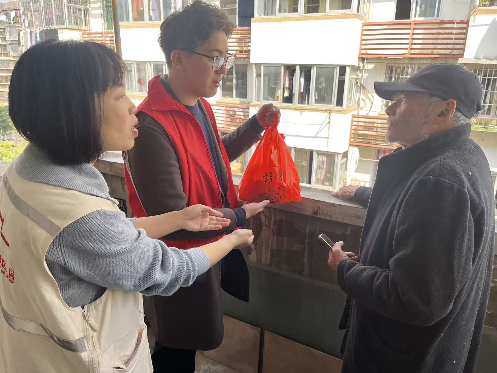 活动现场,党员们化身志愿者,为社区老人们分发拗九粥,细心维持现场秩序,用一碗碗热气腾腾的拗九粥传递着浓浓的敬老情。随后,志愿者们分组上门,为福屿社区的高龄、独居老人们送去生活物资与春日温暖,与老人们促膝长谈,关切询问他们的身体状况与生活需求,用实际行动践行“为人民服务”的初心使命,让老人们真切感受到党组织的关怀与温暖。